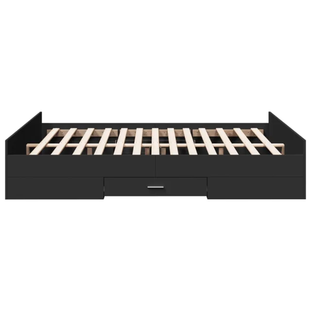Posteljni okvir - Dvoposteljna postelja - Zakonska postelja s predali črn 150x200 cm inženirski les