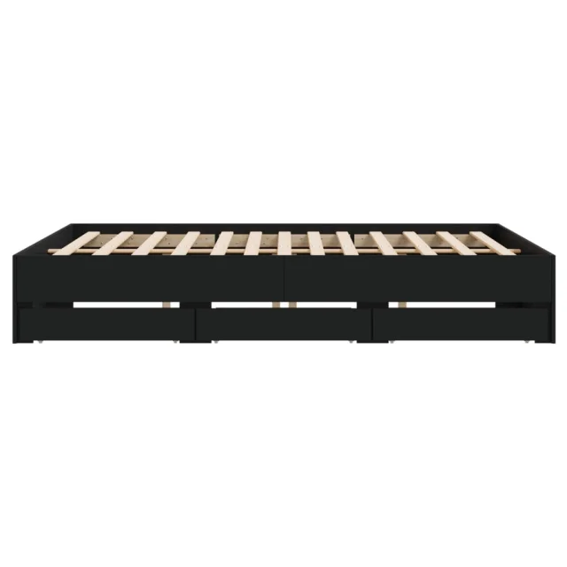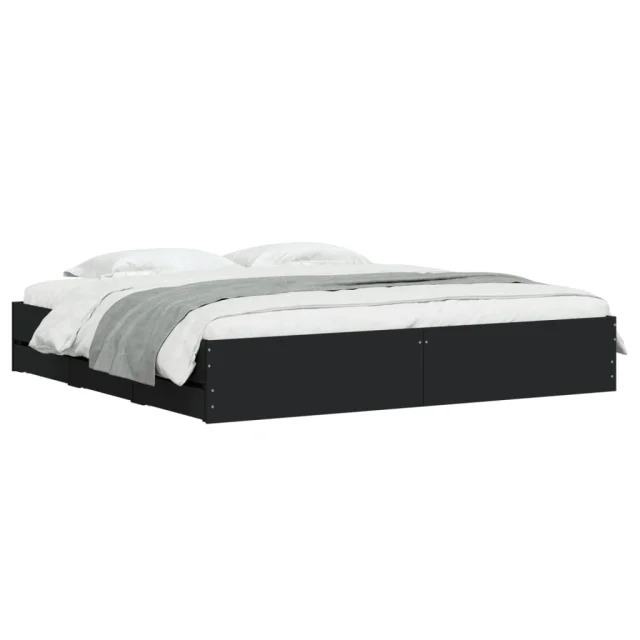 Posteljni okvir - Dvoposteljna postelja - Zakonska postelja s predali črn 160x200 cm inženirski les