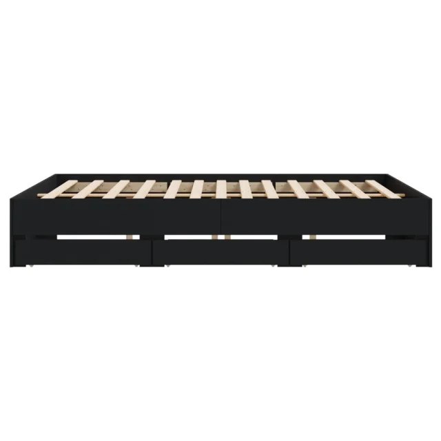 Posteljni okvir - Dvoposteljna postelja - Zakonska postelja s predali črn 200x200 cm inženirski les