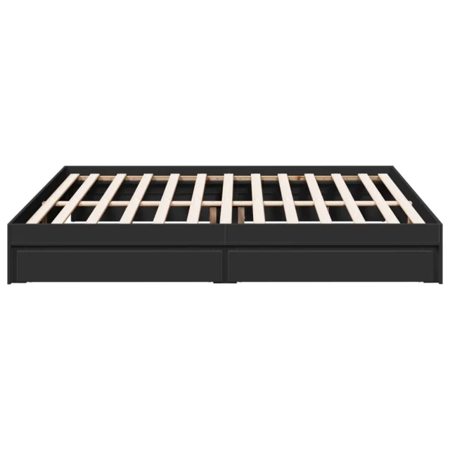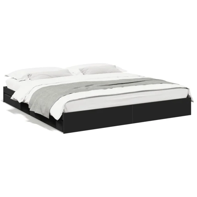 Posteljni okvir - Dvoposteljna postelja - Zakonska postelja s predali črn 200x200 cm inženirski les