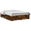Posteljni okvir - Dvoposteljna postelja - Zakonska postelja s predali dimljen hrast 140x190 cm inž. les