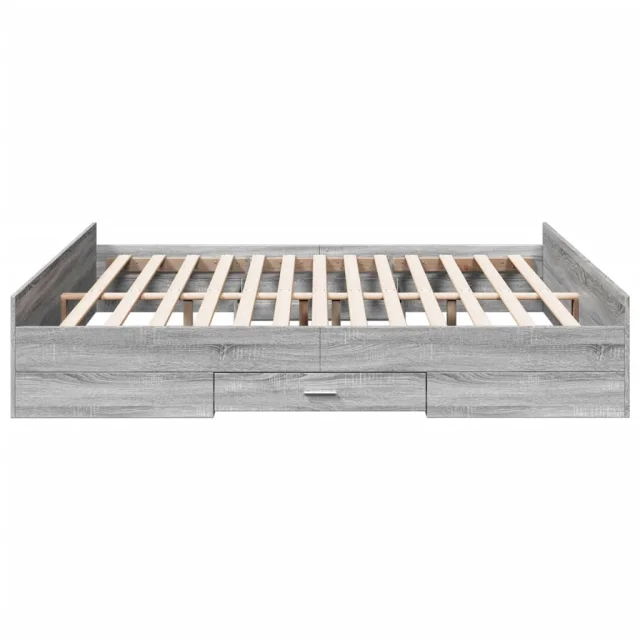 Posteljni okvir - Dvoposteljna postelja - Zakonska postelja s predali siva sonoma 180x200 cm inženirski les