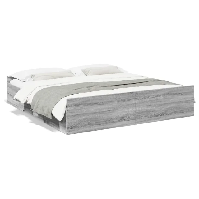 Posteljni okvir - Dvoposteljna postelja - Zakonska postelja s predali siva sonoma 200x200 cm inženirski les