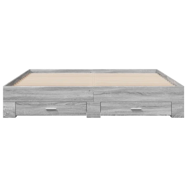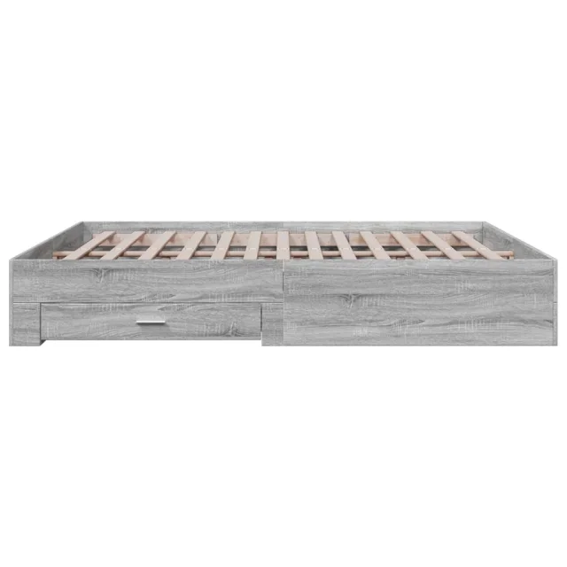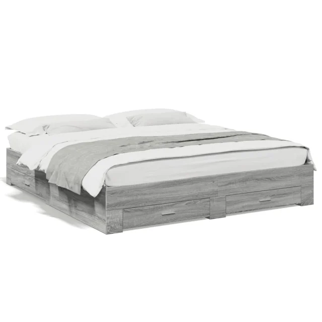 Posteljni okvir - Dvoposteljna postelja - Zakonska postelja s predali siva sonoma 200x200 cm inženirski les