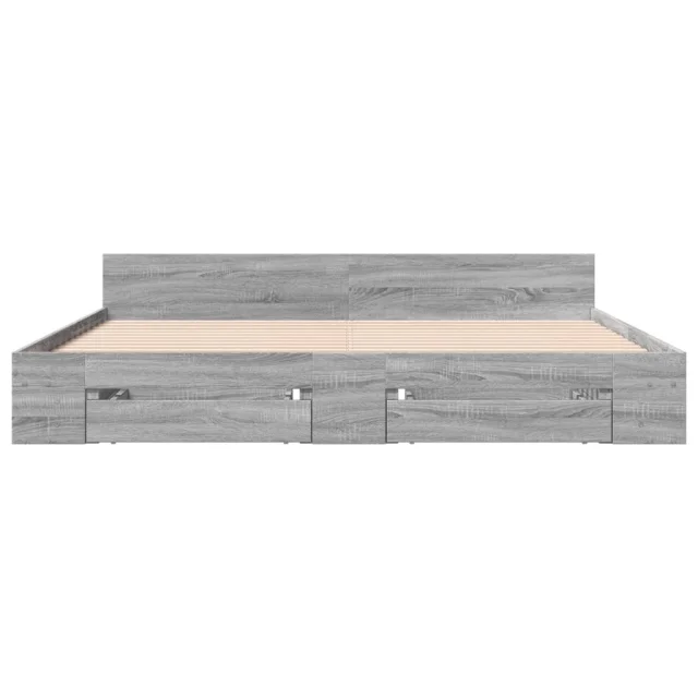 Posteljni okvir - Dvoposteljna postelja - Zakonska postelja s predali siva sonoma 200x200 cm inženirski les