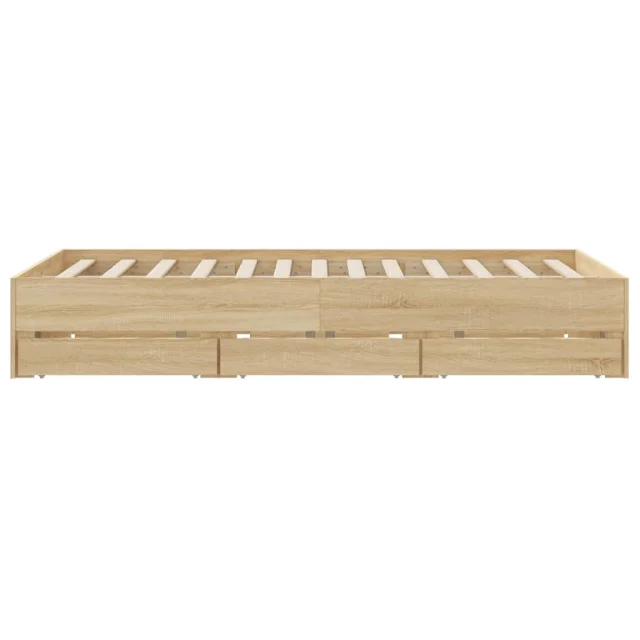 Posteljni okvir - Dvoposteljna postelja - Zakonska postelja s predali sonoma hrast 140x200cm inženirski les