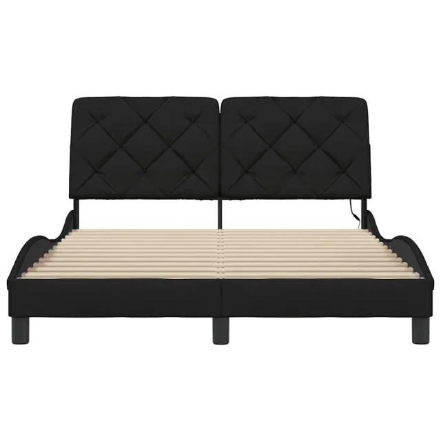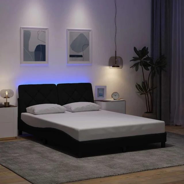 Posteljni okvir - Dvoposteljna postelja - Zakonska postelja z LED brez vzmetnice črn 140x190 cm blago