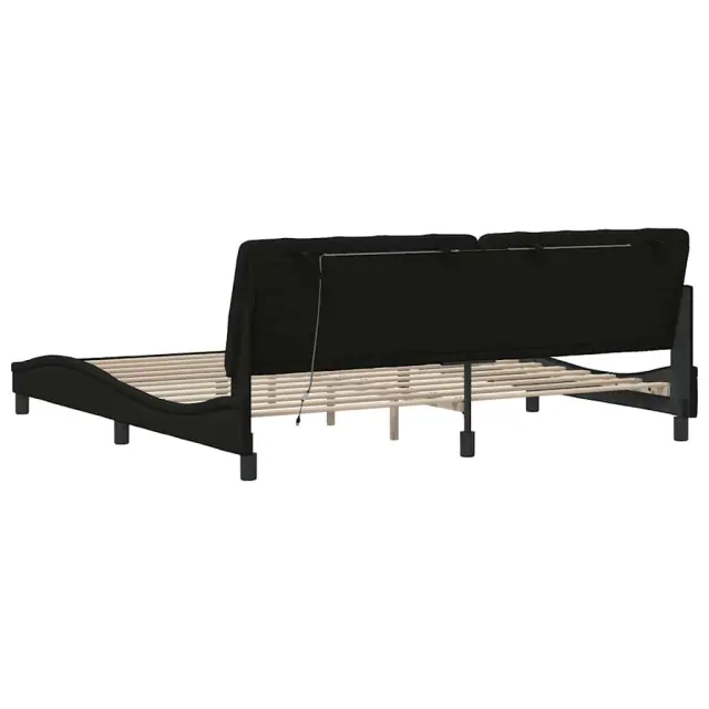 Posteljni okvir - Dvoposteljna postelja - Zakonska postelja z LED brez vzmetnice črn 200x200 cm blago