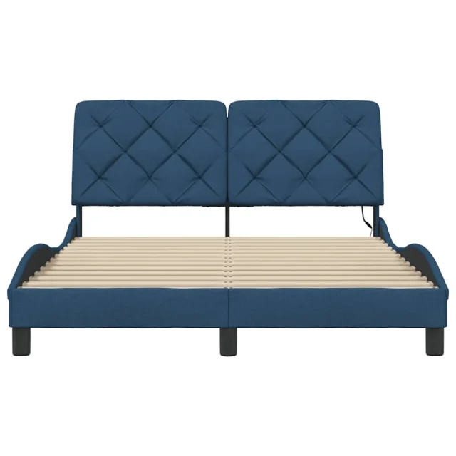 Posteljni okvir - Dvoposteljna postelja - Zakonska postelja z LED brez vzmetnice moder 140x200 cm tkanina