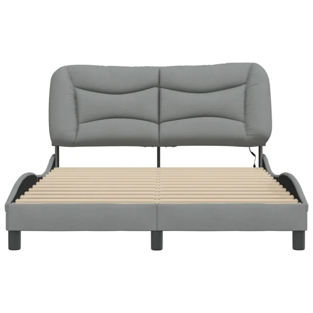 Posteljni okvir - Dvoposteljna postelja - Zakonska postelja z LED brez vzmetnice svetlo siv 120x200cm blago