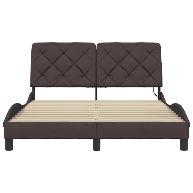 Posteljni okvir - Dvoposteljna postelja - Zakonska postelja z LED brez vzmetnice temno rjav 120x200cm blago