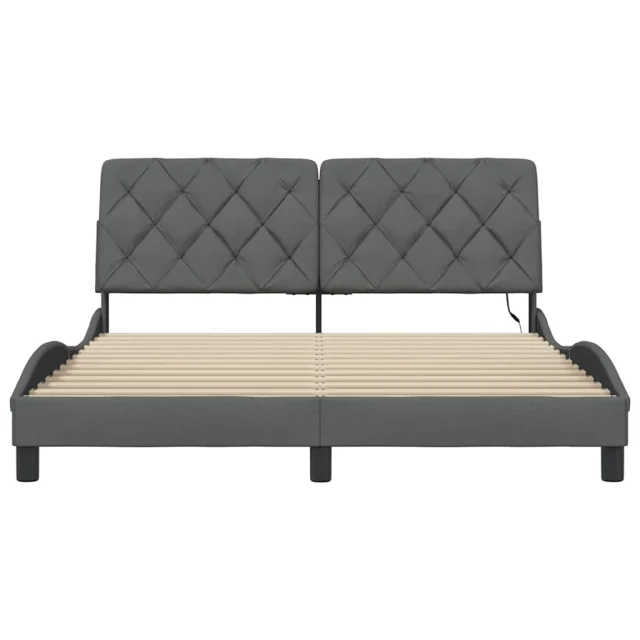 Posteljni okvir - Dvoposteljna postelja - Zakonska postelja z LED brez vzmetnice temno siv 160x200 cm blago