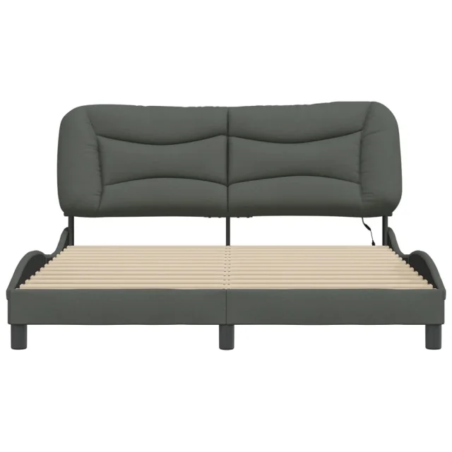 Posteljni okvir - Dvoposteljna postelja - Zakonska postelja z LED brez vzmetnice temno siv 160x200 cm blago