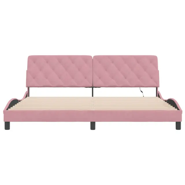 Posteljni okvir - Dvoposteljna postelja - Zakonska postelja z LED diodami roza 200x200 cm žamet