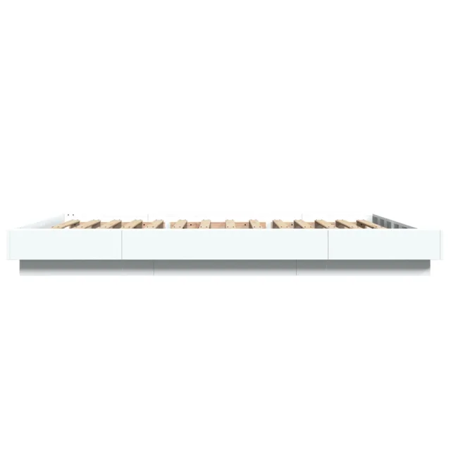 Posteljni okvir - Dvoposteljna postelja - Zakonska postelja z LED lučkami bel 120x200 cm inženirski les