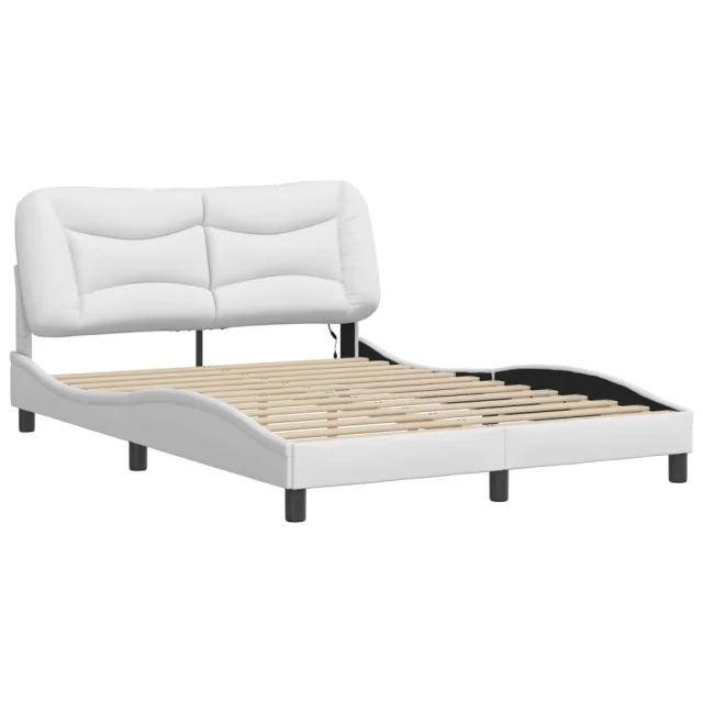 Posteljni okvir - Dvoposteljna postelja - Zakonska postelja z LED lučkami bel 140x190 cm umetno usnje