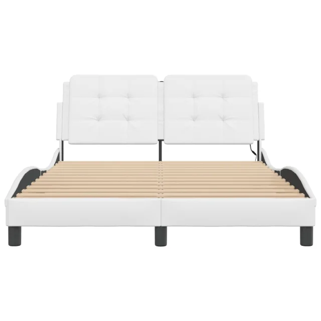 Posteljni okvir - Dvoposteljna postelja - Zakonska postelja z LED lučkami bel 140x190 cm umetno usnje