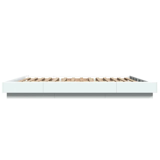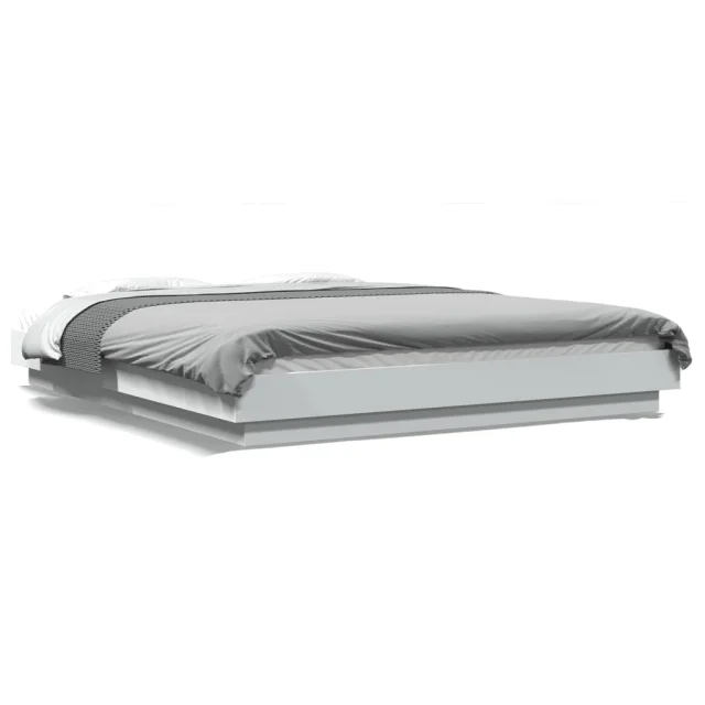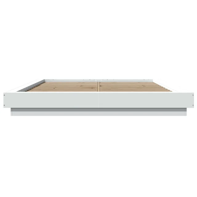 Posteljni okvir - Dvoposteljna postelja - Zakonska postelja z LED lučkami bel 150x200 cm inženirski les