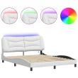 Posteljni okvir - Dvoposteljna postelja - Zakonska postelja z LED lučkami bel 160x200 cm umetno usnje