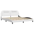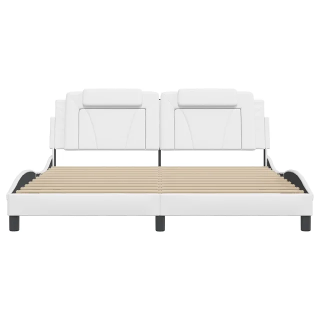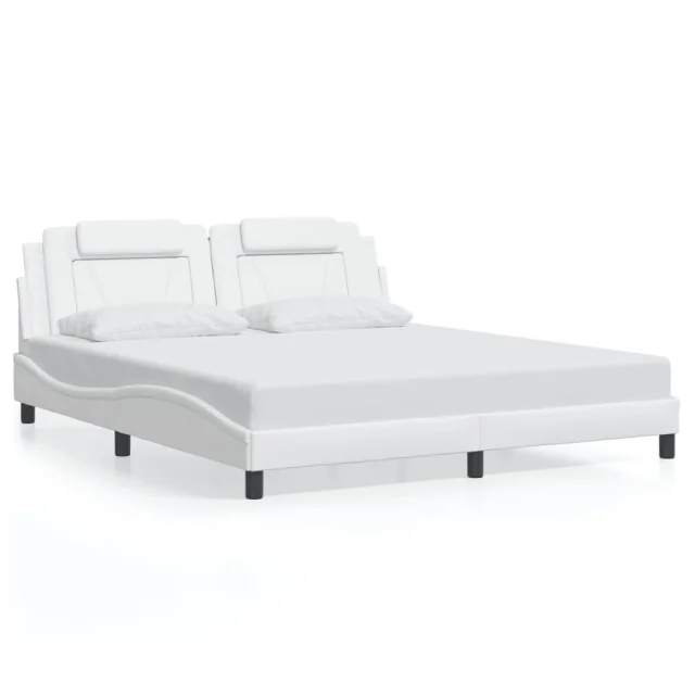 Posteljni okvir - Dvoposteljna postelja - Zakonska postelja z LED lučkami bel 180x200 cm umetno usnje