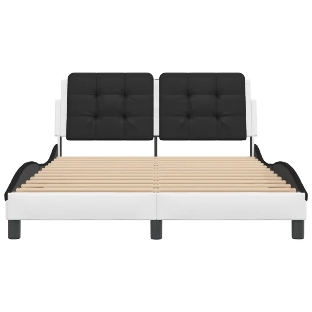 Posteljni okvir - Dvoposteljna postelja - Zakonska postelja z LED lučkami belo črn 120x200 cm umetno usnje