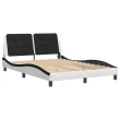 Posteljni okvir - Dvoposteljna postelja - Zakonska postelja z LED lučkami belo črn 140x200 cm umetno usnje