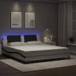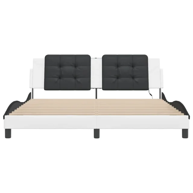 Posteljni okvir - Dvoposteljna postelja - Zakonska postelja z LED lučkami belo črn 180x200 cm umetno usnje