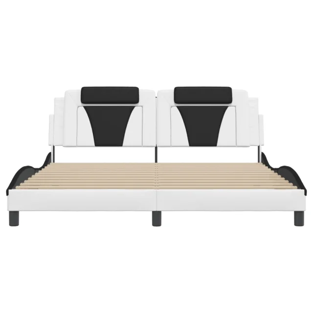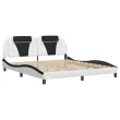 Posteljni okvir - Dvoposteljna postelja - Zakonska postelja z LED lučkami belo črn 180x200 cm umetno usnje