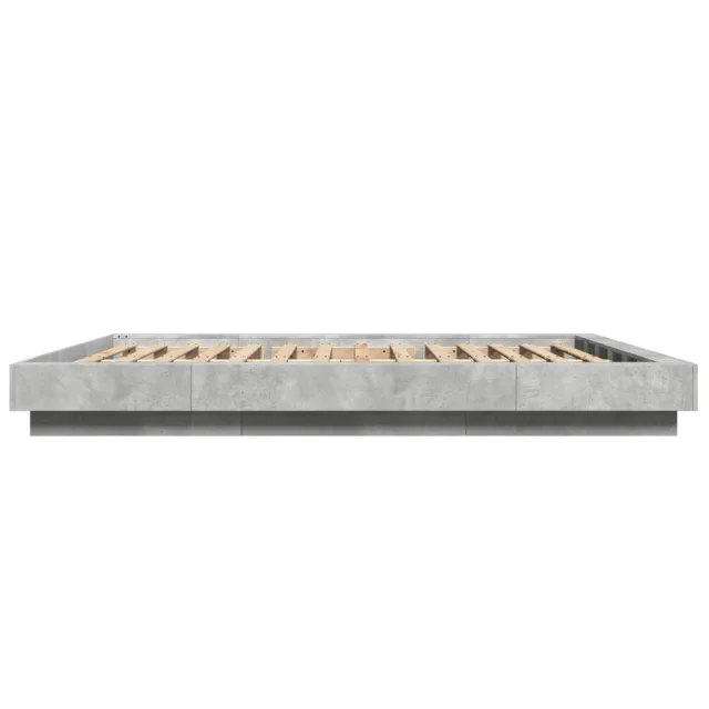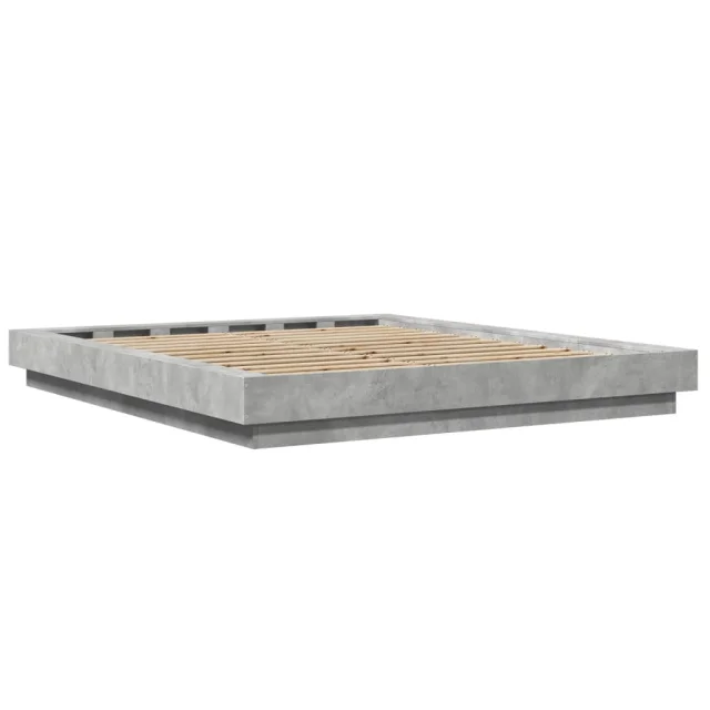 Posteljni okvir - Dvoposteljna postelja - Zakonska postelja z LED lučkami betonsko siv 150x200 cm inž. les