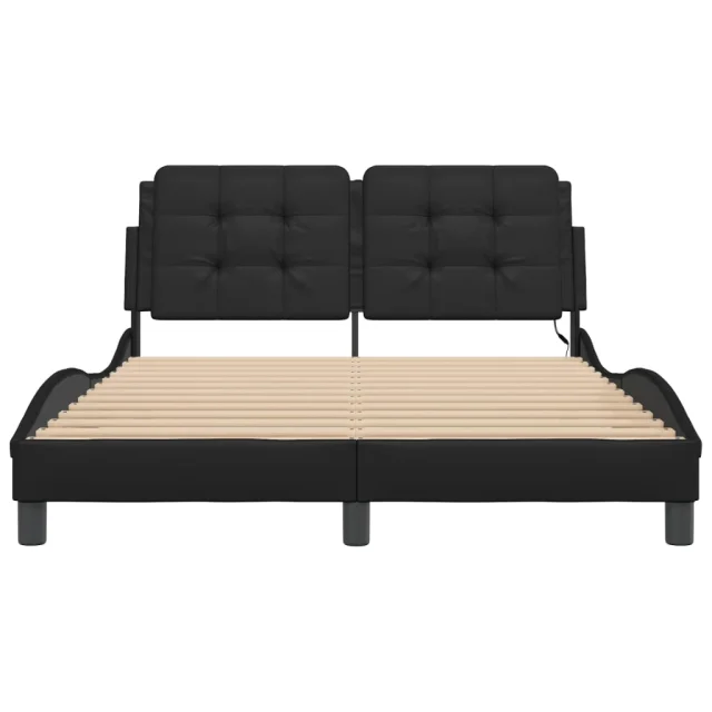 Posteljni okvir - Dvoposteljna postelja - Zakonska postelja z LED lučkami črn 140x190 cm umetno usnje