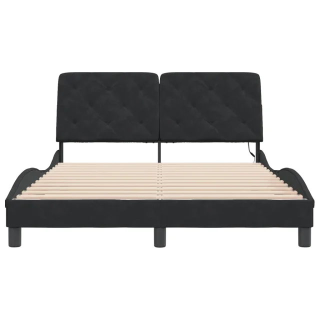 Posteljni okvir - Dvoposteljna postelja - Zakonska postelja z LED lučkami črn 140x190 cm žamet