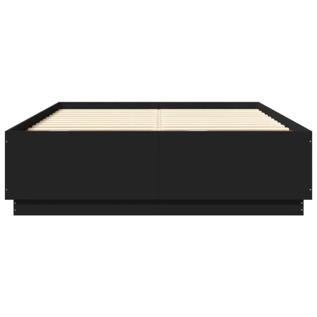 Posteljni okvir - Dvoposteljna postelja - Zakonska postelja z LED lučkami črn 150x200 cm inženirski les