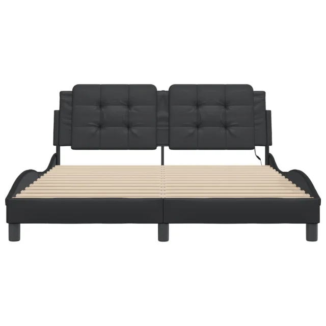 Posteljni okvir - Dvoposteljna postelja - Zakonska postelja z LED lučkami črn 160x200 cm umetno usnje