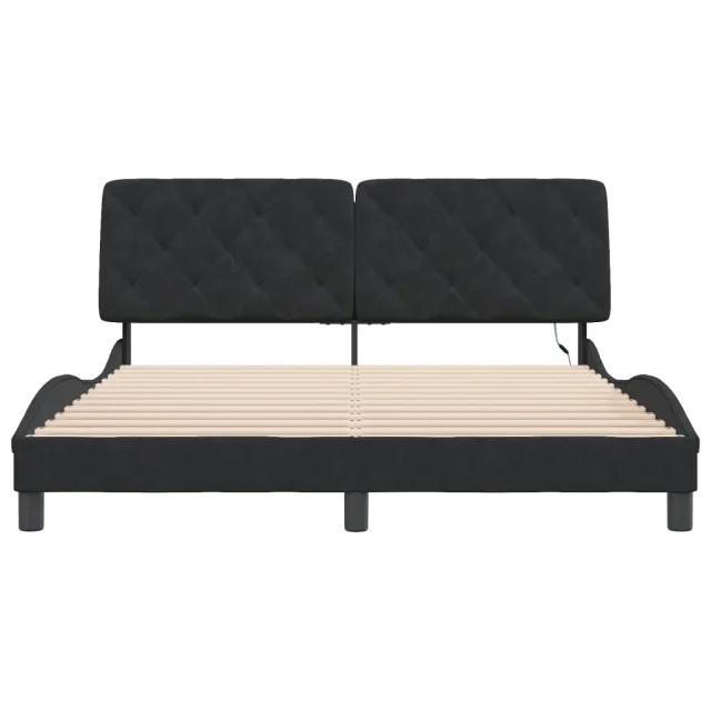 Posteljni okvir - Dvoposteljna postelja - Zakonska postelja z LED lučkami črn 160x200 cm žamet