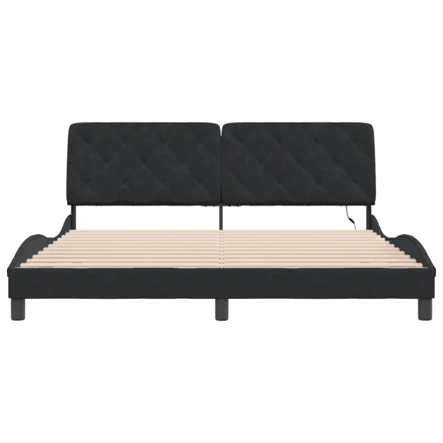 Posteljni okvir - Dvoposteljna postelja - Zakonska postelja z LED lučkami črn 180x200 cm žamet