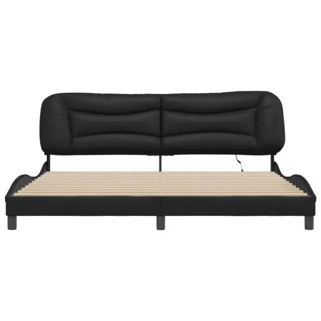 Posteljni okvir - Dvoposteljna postelja - Zakonska postelja z LED lučkami črn 200x200 cm umetno usnje