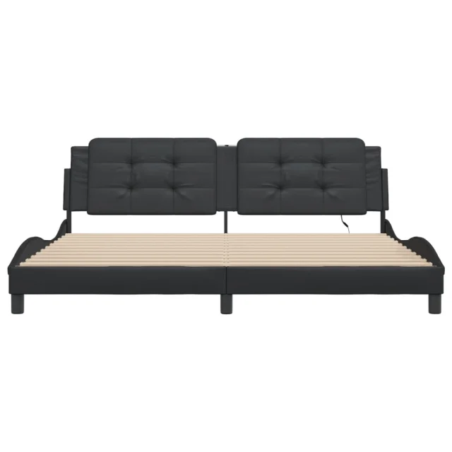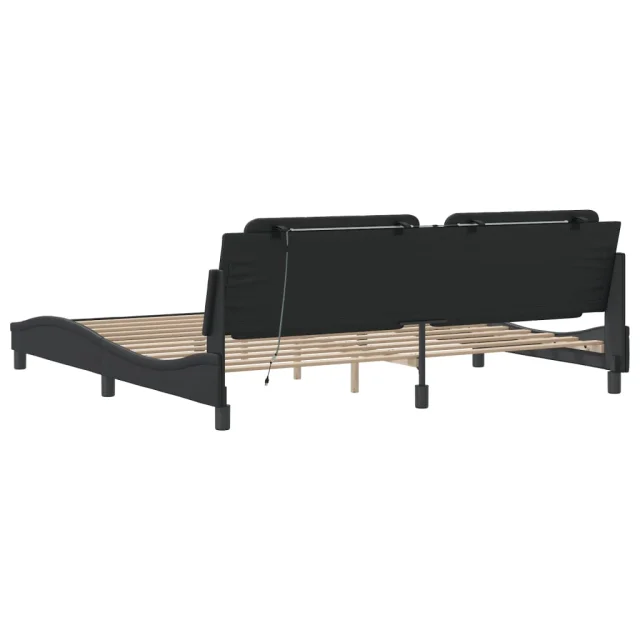 Posteljni okvir - Dvoposteljna postelja - Zakonska postelja z LED lučkami črn 200x200 cm umetno usnje