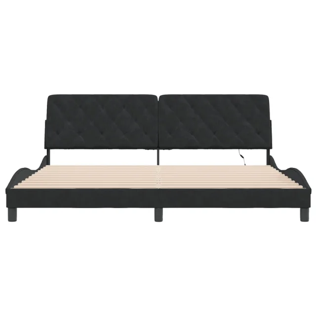 Posteljni okvir - Dvoposteljna postelja - Zakonska postelja z LED lučkami črn 200x200 cm žamet