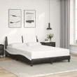 Posteljni okvir - Dvoposteljna postelja - Zakonska postelja z LED lučkami črno bel 140x200 cm umetno usnje