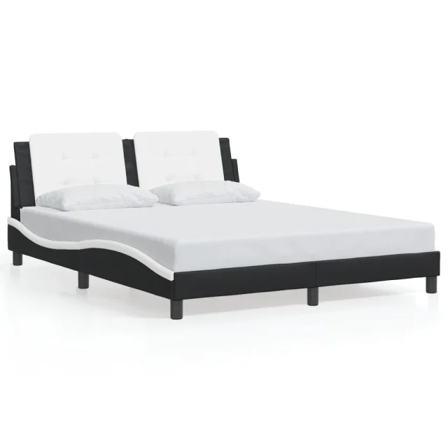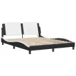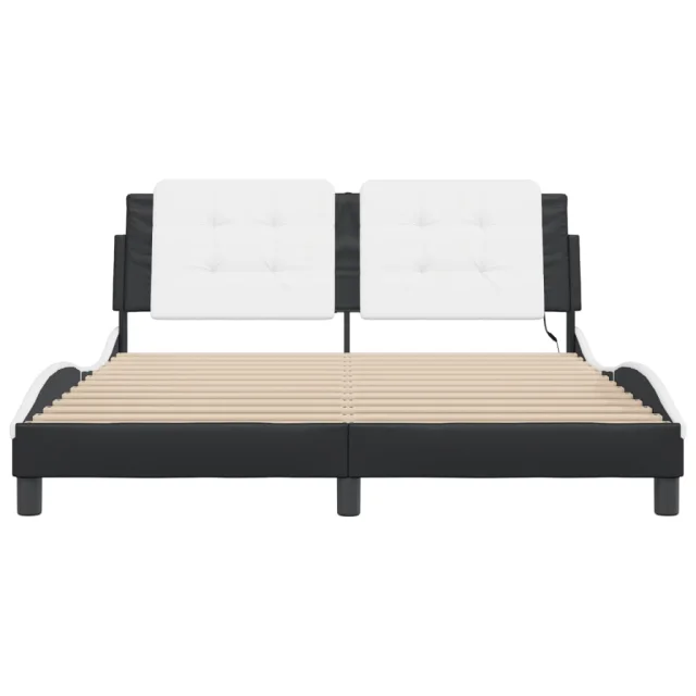 Posteljni okvir - Dvoposteljna postelja - Zakonska postelja z LED lučkami črno bel 160x200 cm umetno usnje