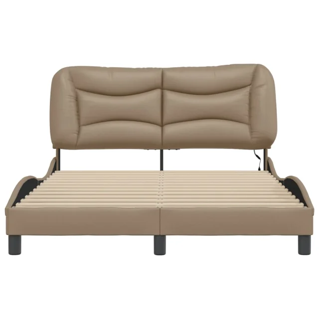 Posteljni okvir - Dvoposteljna postelja - Zakonska postelja z LED lučkami kapučino 120x200 cm umetno usnje