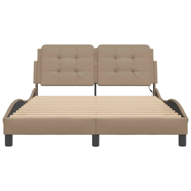 Posteljni okvir - Dvoposteljna postelja - Zakonska postelja z LED lučkami kapučino 120x200 cm umetno usnje