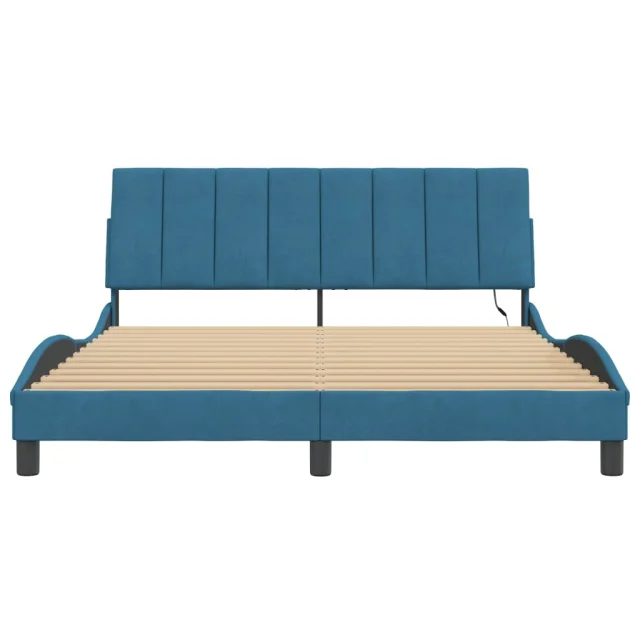Posteljni okvir - Dvoposteljna postelja - Zakonska postelja z LED lučkami moder 160x200 cm žamet