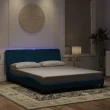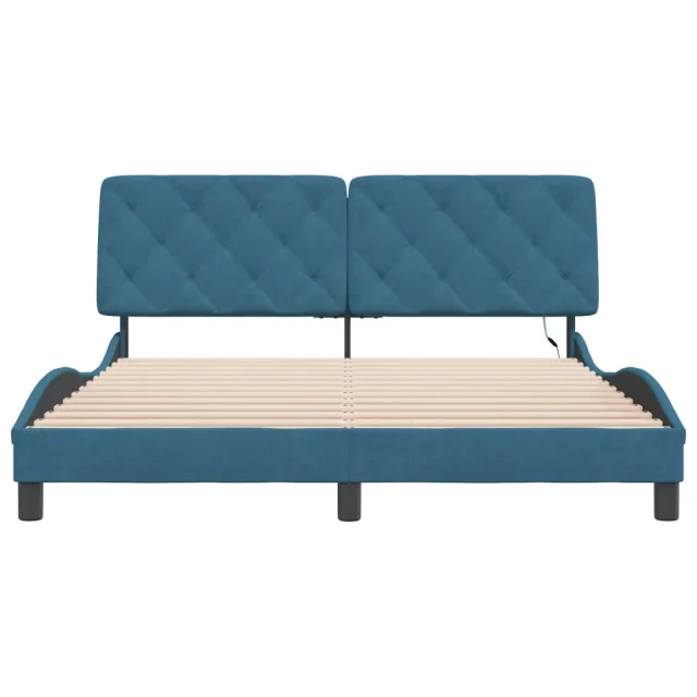 Posteljni okvir - Dvoposteljna postelja - Zakonska postelja z LED lučkami moder 160x200 cm žamet