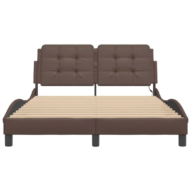 Posteljni okvir - Dvoposteljna postelja - Zakonska postelja z LED lučkami rjav 120x200 cm umetno usnje