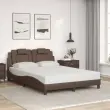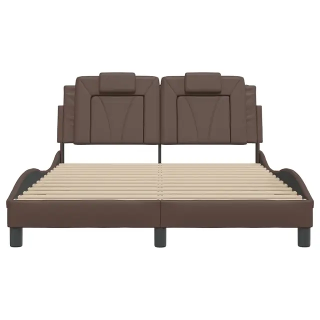 Posteljni okvir - Dvoposteljna postelja - Zakonska postelja z LED lučkami rjav 140x190 cm umetno usnje