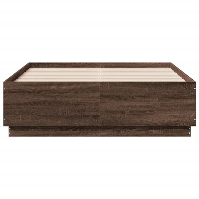 Posteljni okvir - Dvoposteljna postelja - Zakonska postelja z LED lučkami rjavi hrast 120x190 cm inž. les