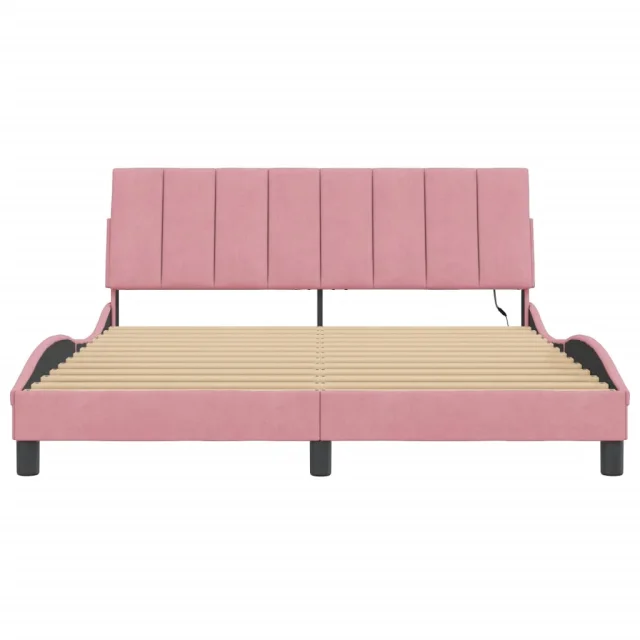 Posteljni okvir - Dvoposteljna postelja - Zakonska postelja z LED lučkami roza 160x200 cm žamet