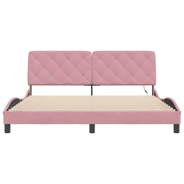 Posteljni okvir - Dvoposteljna postelja - Zakonska postelja z LED lučkami roza 180x200 cm žamet