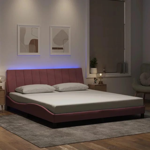 Posteljni okvir - Dvoposteljna postelja - Zakonska postelja z LED lučkami roza 180x200 cm žamet